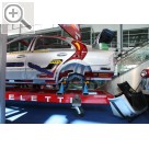 | Auf der Sonderausstellung "Berufe rund ums Auto" wurde ein Mercedes Schnittmodell auf einer CELETTE Sevenne Richtbank gezeigt. |