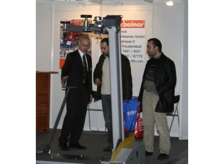 Gerhard Finkbeiner, Geschäftsführer FINKBEINER Hebetechnik, an seinem Bestseller, der mobilen 2-Säulen Hebebühne FHB3000-SS |
