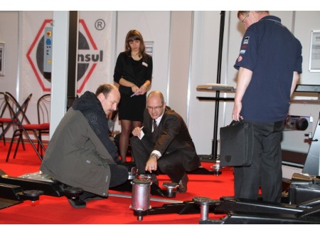 Matthias Heinz (mitte) über die Details für ein sicheres Heben von Transportern.