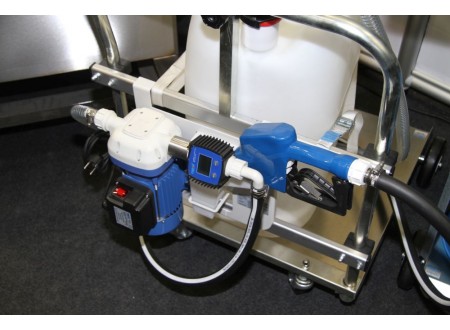 NEU - mobiler RAPID AdBlue® Spender mit flexiblen Gebindeeinheiten, Elektropumpe und geeichter Messeinheit vor dem Handdurchlauf. |