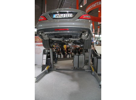 Auf der TROST Schau 2016 - sehr gute Arbeitsfreiheit unter der hydraulischen mobilen trost monochrom Zweisäulenbühne.