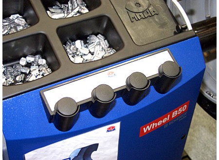 Die MAHA Radwuchtmaschine WHEEL B50. Radioknöpfe für eine einfache und ergonomische Bedienung. |