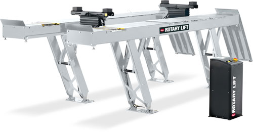 Die bekannte SM 4-Säulen Serie von Rotary bekommt mit der neuen SM40LT ein neues Mitglied. Besonderes Kennzeichen ist der in die Fahrfläche integrierte Radfreiheber. Optional läßt sich die SM40LT mit einem speziellen Aufbau zu einer Achsvermessungs-Hebebühne aufrüsten. Serienmäßig mit an Bord ist die verschiebbare Fahrfläche - ein wichtiges Detail um unterschiedlichen Anwendungsumgebungen in stärkerem Maße Rechnung tragen zu können.