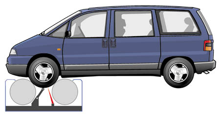 Rollensatz eingebaut, der auf einem Schlitten montiert die Reifen erfasst und