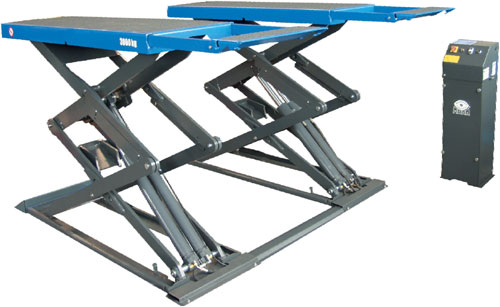 Die mit einer speziellen zweistufigen Aushubunterstützung ausgestattete besonders flache Scheren-Hebebühne bietet darüber hinaus den Komfort, dass das Anheben aus der untersten Position sehr sanft erfolgt. Dem Schlagen der Aufnahmeplatten an den Fahrzeugunterboden und der damit verbundenen Gefahr, das Fahrzeug zu beschädigen wird somit Einhalt geboten. Nahezu geräuschlos und somit ohne Lärmbelästung für die Werkstattmitarbeiter und gegebenenfalls anwesende Werkstattkunden, erfolgt das sanfte Einfahren der Bühne in den ganz abgelassenen Zustand.